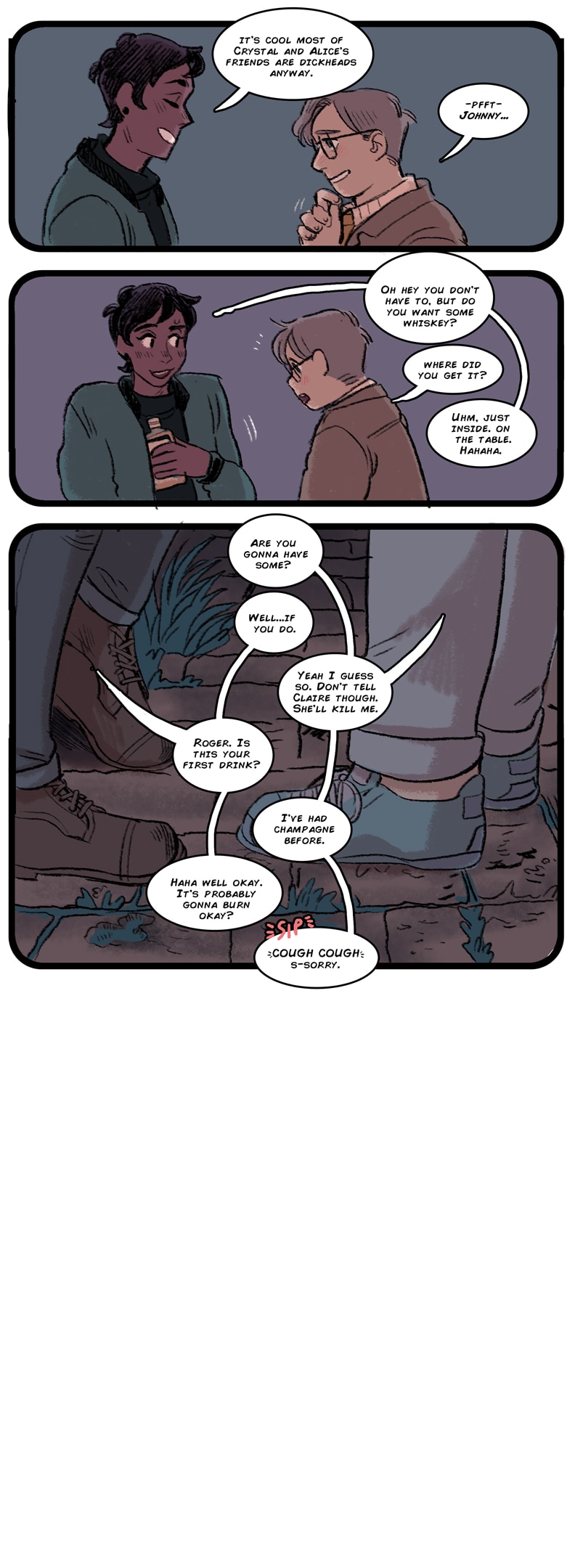 Hey everyone! Here's Part 13! ***don't drink if you're under the legal drinking age in your country.*** You can now tip George and Johnny on the tapas app! ^^ As always talk to me on twitter @srganuch support me on patreon! https://www.patreon.com/srganuch -Savi
