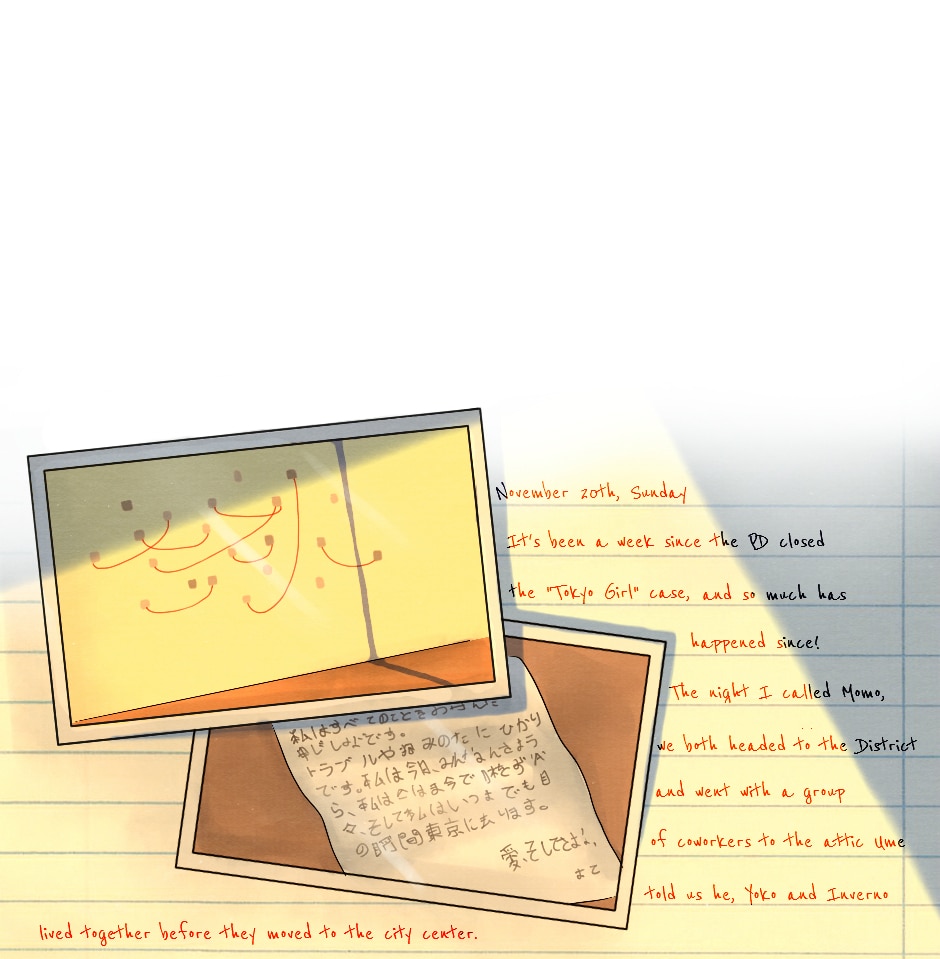 First series of the urban-Tokyo-based collection "LIES", TOKYO GIRL. is a modern tale that explores the psychology, fears and dreams of three young people: a girl only known by the name of "Yoko", a Tokyo Shore boy, Nagoyaki Hikari, and the enigmatic Ume Okimoto, an heavy heart running from a complicated past.