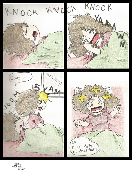 This is a true story that happened to me on Christmas eve. Someone knocked on my door and I sat up so quickly I slammed my face in the window corner. I gave myself a concussion and I promptly went back to sleep after that. Which I learned later you're not supposed to do that. HAH! Well...at least I'm alive.