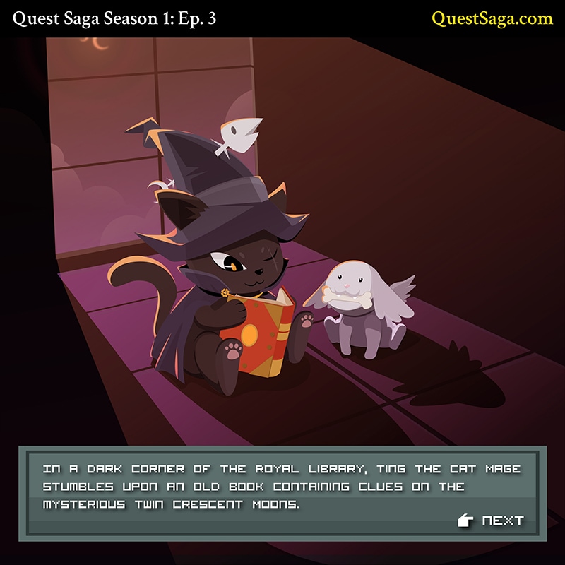 It was an ancient alchemist's work, dated thousands of years ago, containing details on the Twin Crescent Moon phenomenon. Barely legible and often incoherent, the Cat Mage struggles to understand its mysterious text. "Is this actually a prophecy, or was this just written for fun?" he wonders, his head throbbing with curiosity.