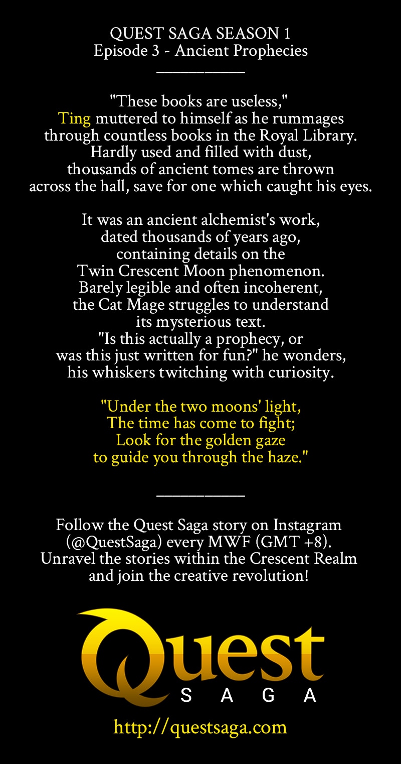 Follow the official Quest Saga story on Instagram every MWF (GMT+8)! Unravel the stories within the Crescent Realm and join the creative revolution. Create Inspired, Become Legendary. http://questsaga.com