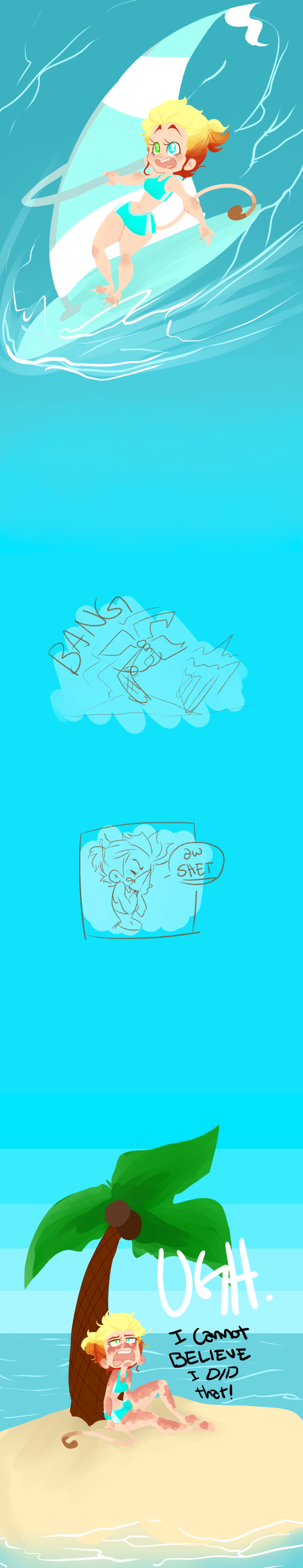 January - Seasons/Time Day 18 - Sailing Day 19 - Tropical Lmaooooo i decided to mush these two together because i thought it was hilarious. This could also be seen as part 1 of day 5,,, liek I'm considering the shark attempting to assist her or something lmaooo AnyWHo, enjoy me facePALMing into the PALM tree ahahhahahhahhahahhah whilst i get a nasty as$ sunburn