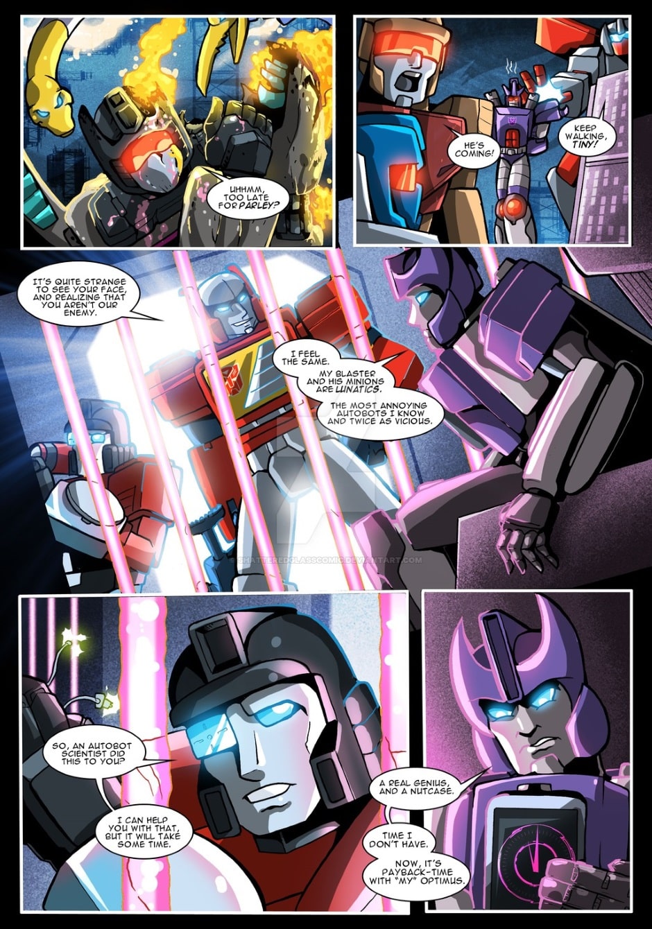 Transformers Shattered Collision was the very first fan fiction multi-page comic that takes place in the Shattered Glass universe of the Transformers.