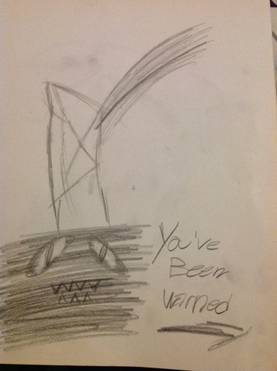 "You've Been Warned" the monster wearing the hat is my dear friend Mr. Shadow. Say hi Mr. Shadow *grudge noise*