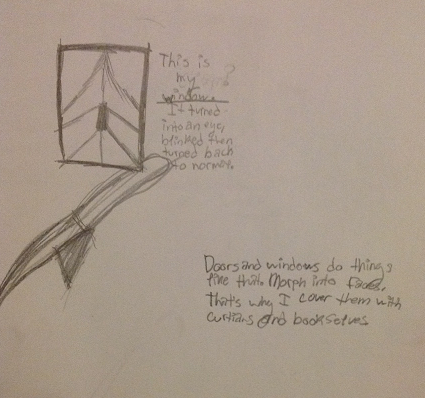 "This is my window. It turned into an eye, blinked, then turned back to normal." (this was pre-meds. shit was crazy back then)