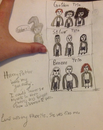 "Harry Potter was my 'get away'. I could immerse myself in that world and forget how different I was." (ew more sappy shit) "Luna was my favorite. She was like me." YOU'RE JUST AS SANE AS I AM (and Draco. Love me some Draco.)