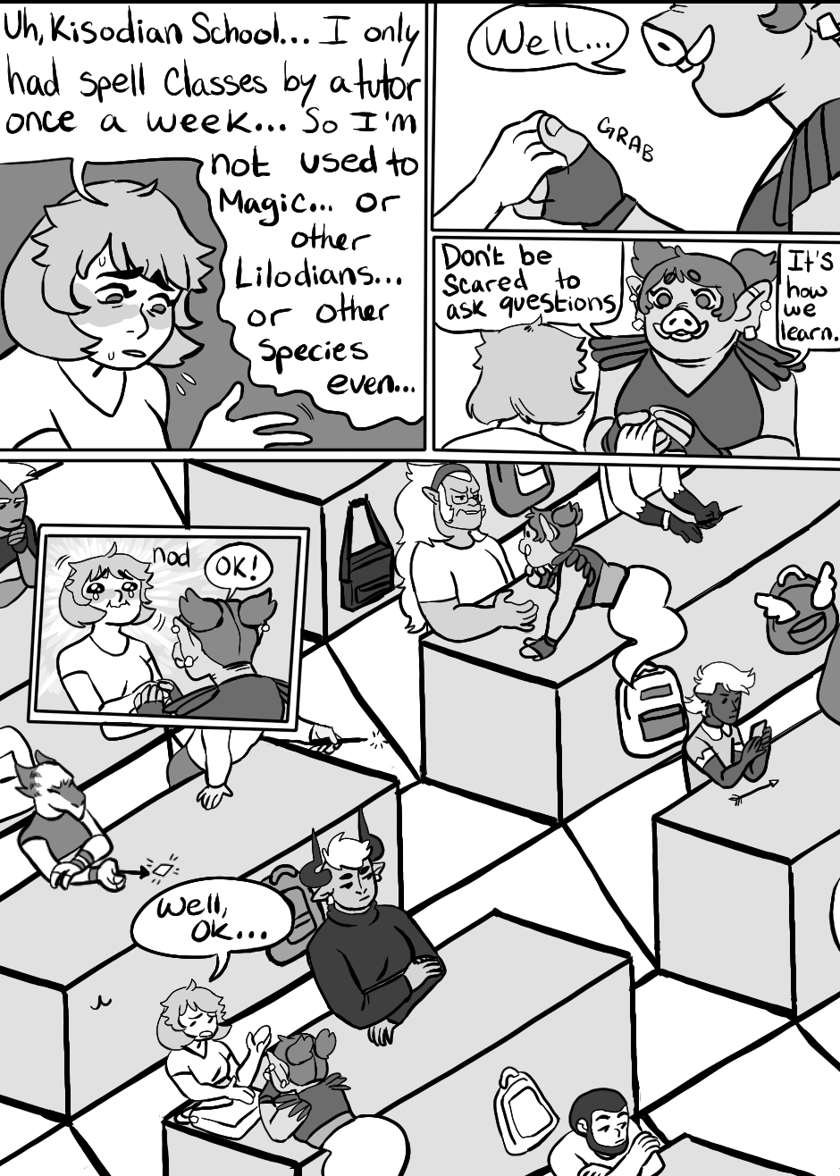 can you guess what panel i hated the most? its the one that made me give up on drawing stairs and made everything ramps. also thumbnail is the cutest orc background character he isnt even important.