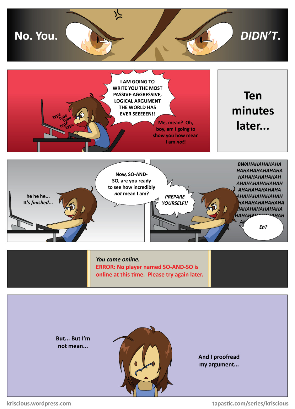 I can't do immediate comebacks in real life, either.