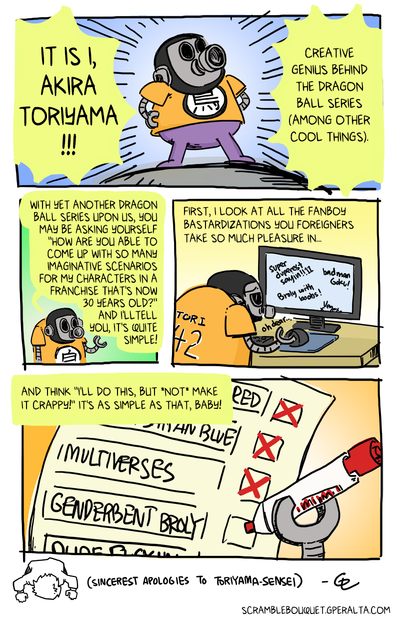 I don't skim the crappier parts of DB fandom, but boy howdy I can only imagine how the "grr hardcore punchy punch" fans feel about a girl Super Saiyan also being what looks to be a genderbent Broly. I for one welcome our fanfiction overlords.