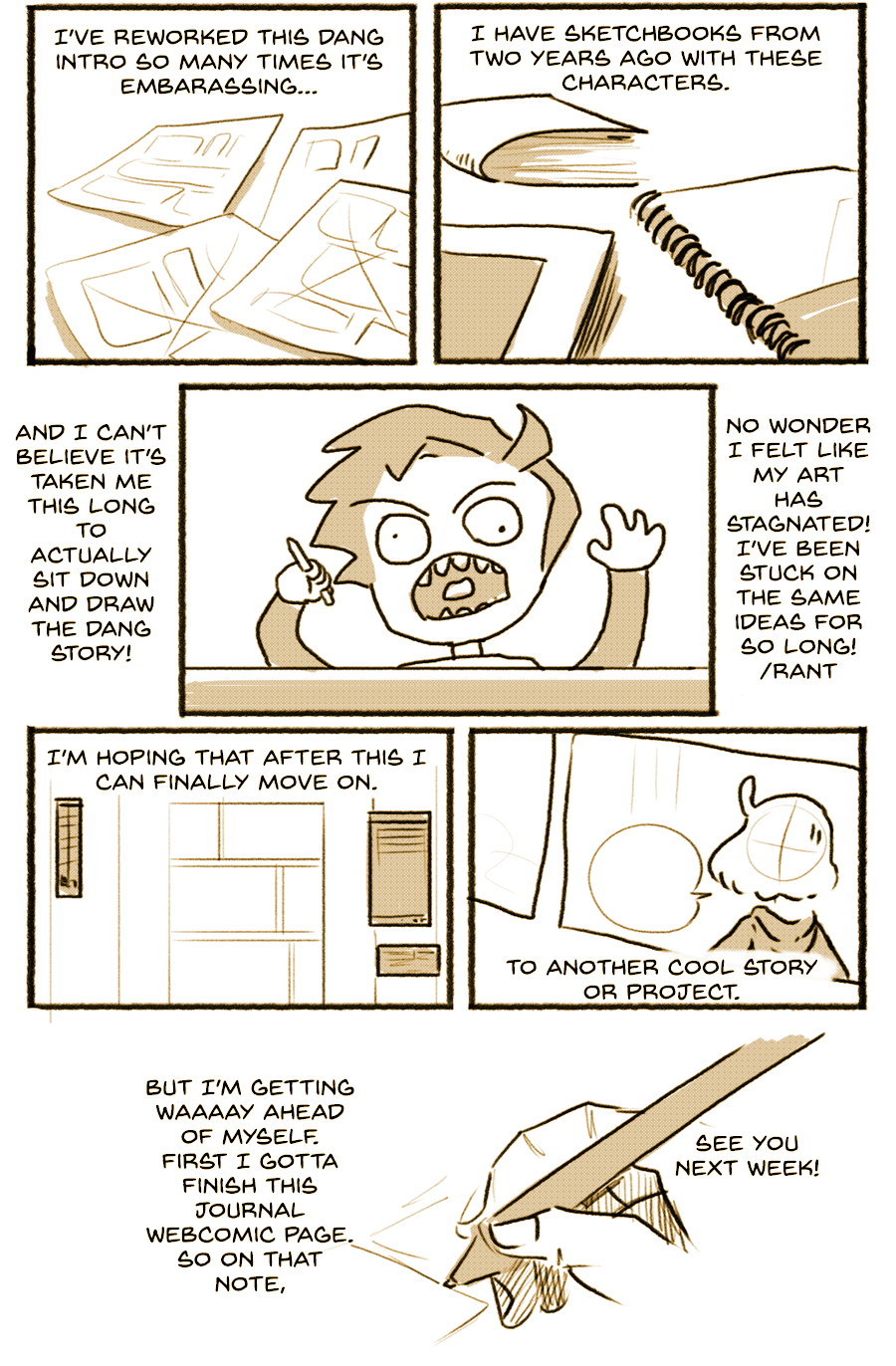 Apologies for not having an episode last week. I was pretty busy work wise and its not super interesting. Pretty much just work. So yeah the week flew by and I completely forgot about the journal webcomic (oops). Sorry 'bout that. Anyhow I'll be more diligent about it!