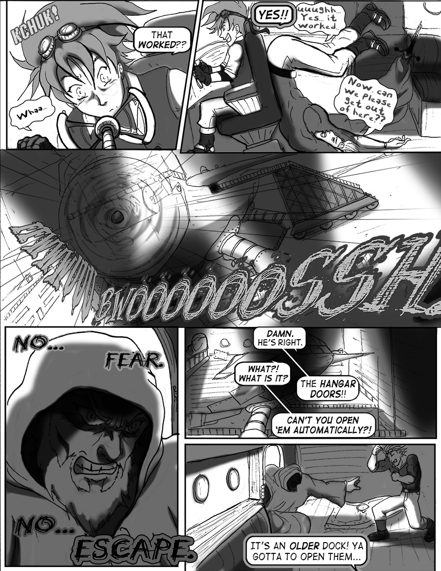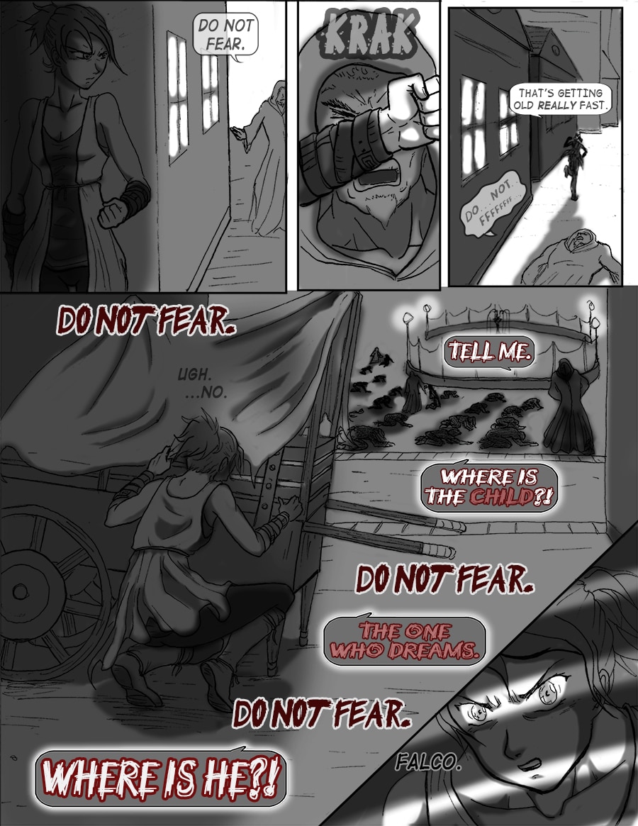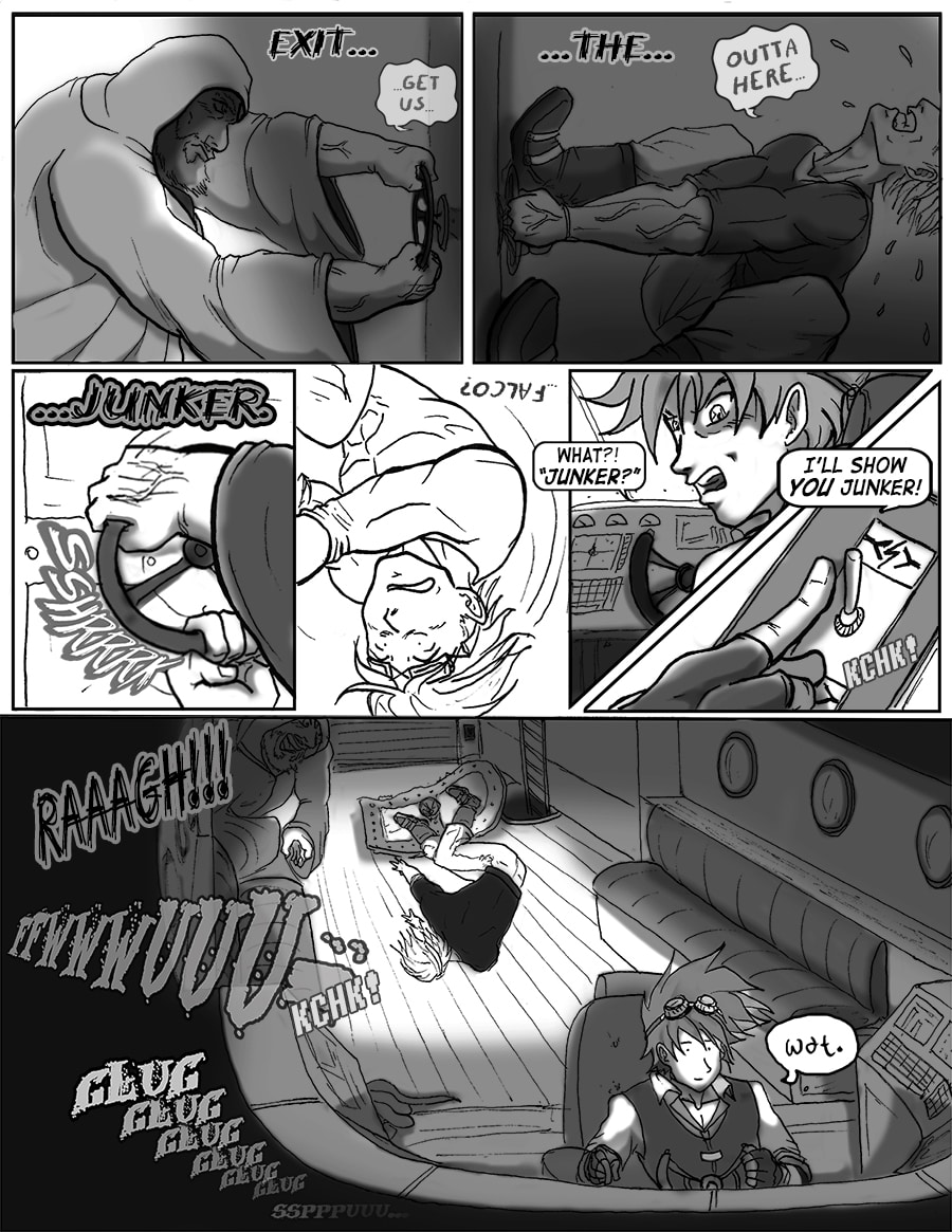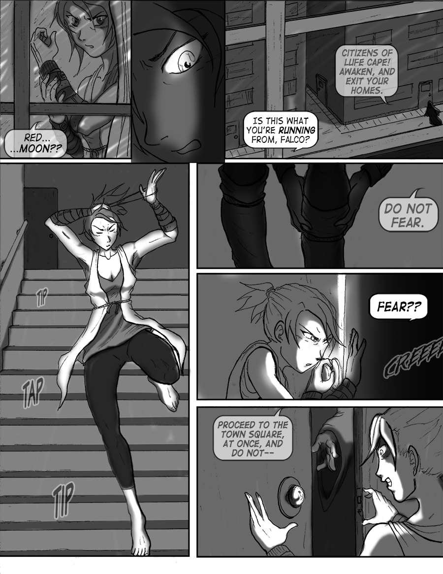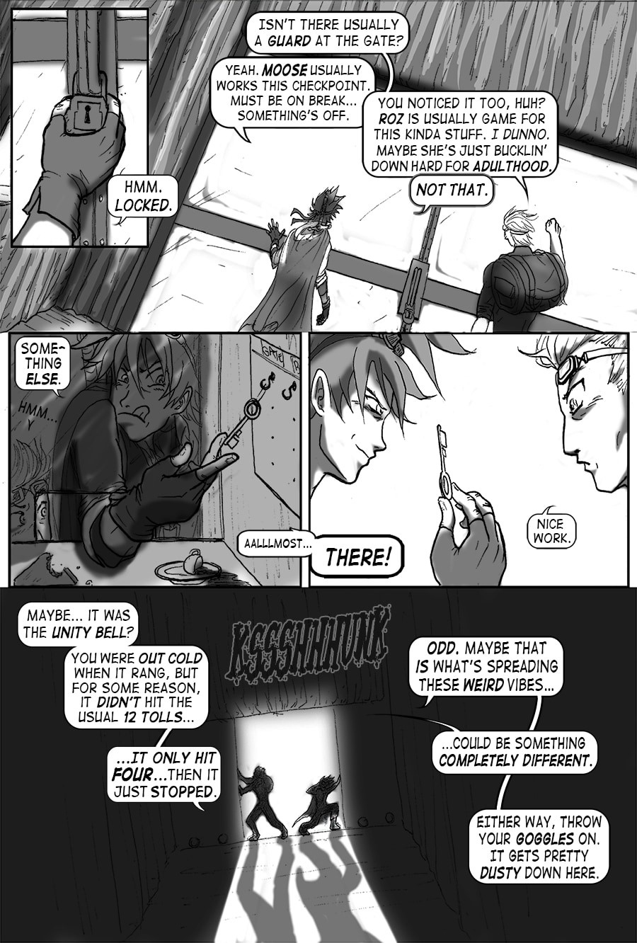 Roz's attempts to sleep are violently interrupted. From her window she sees the bell tower decimated. Falco and Wulfi are en route to the abandoned docks south of town to board Falco's new airship and escape the terror unbeknownst.