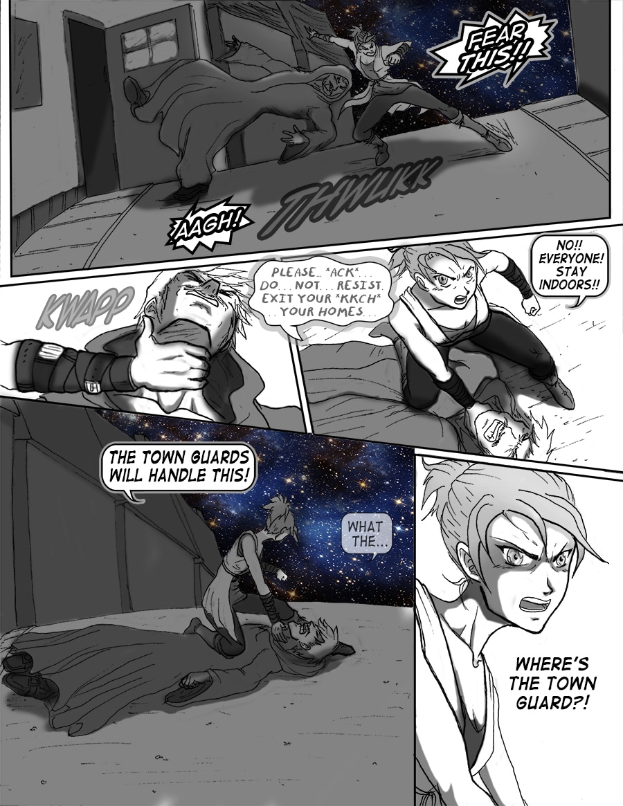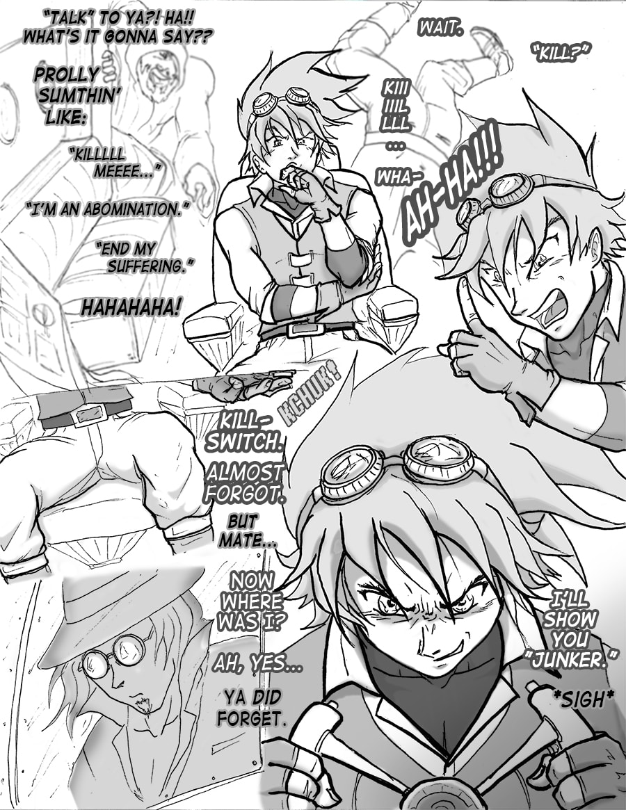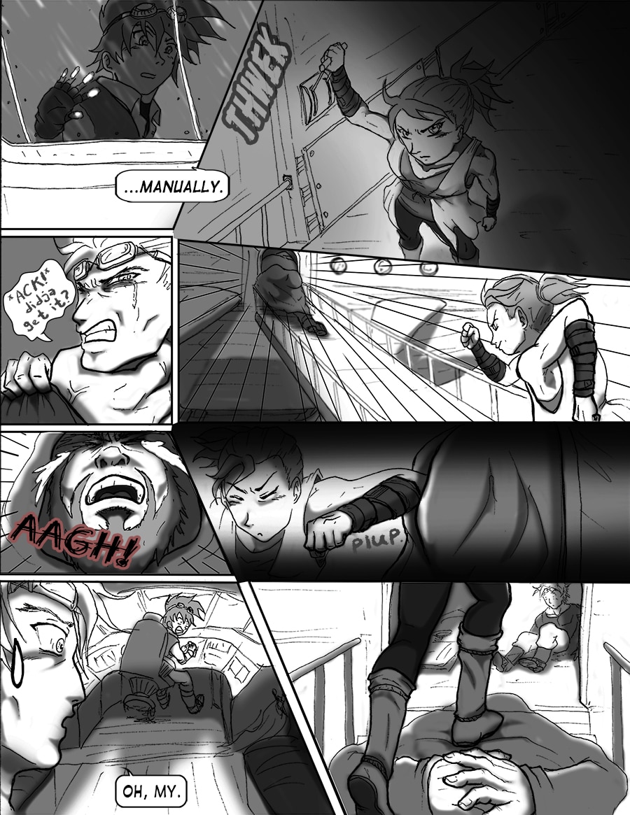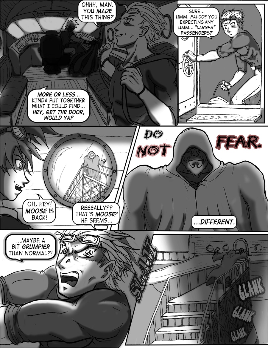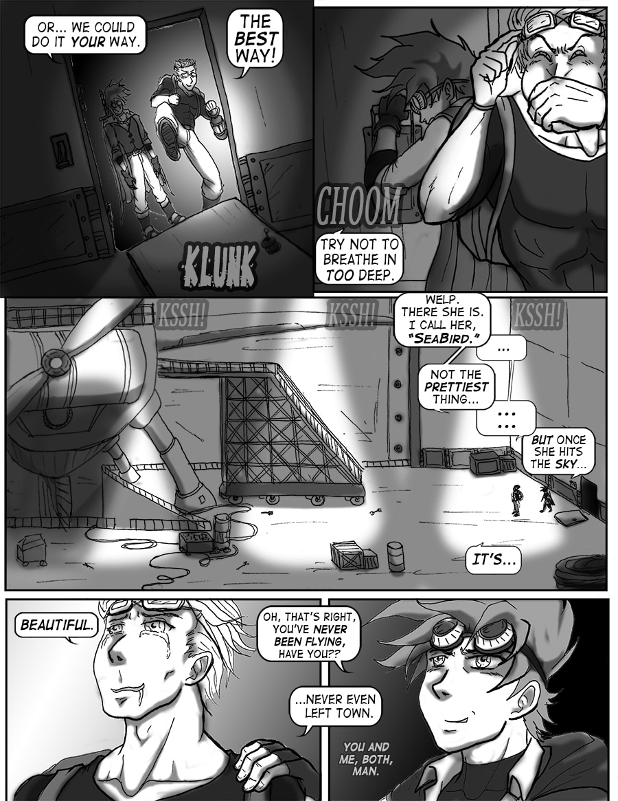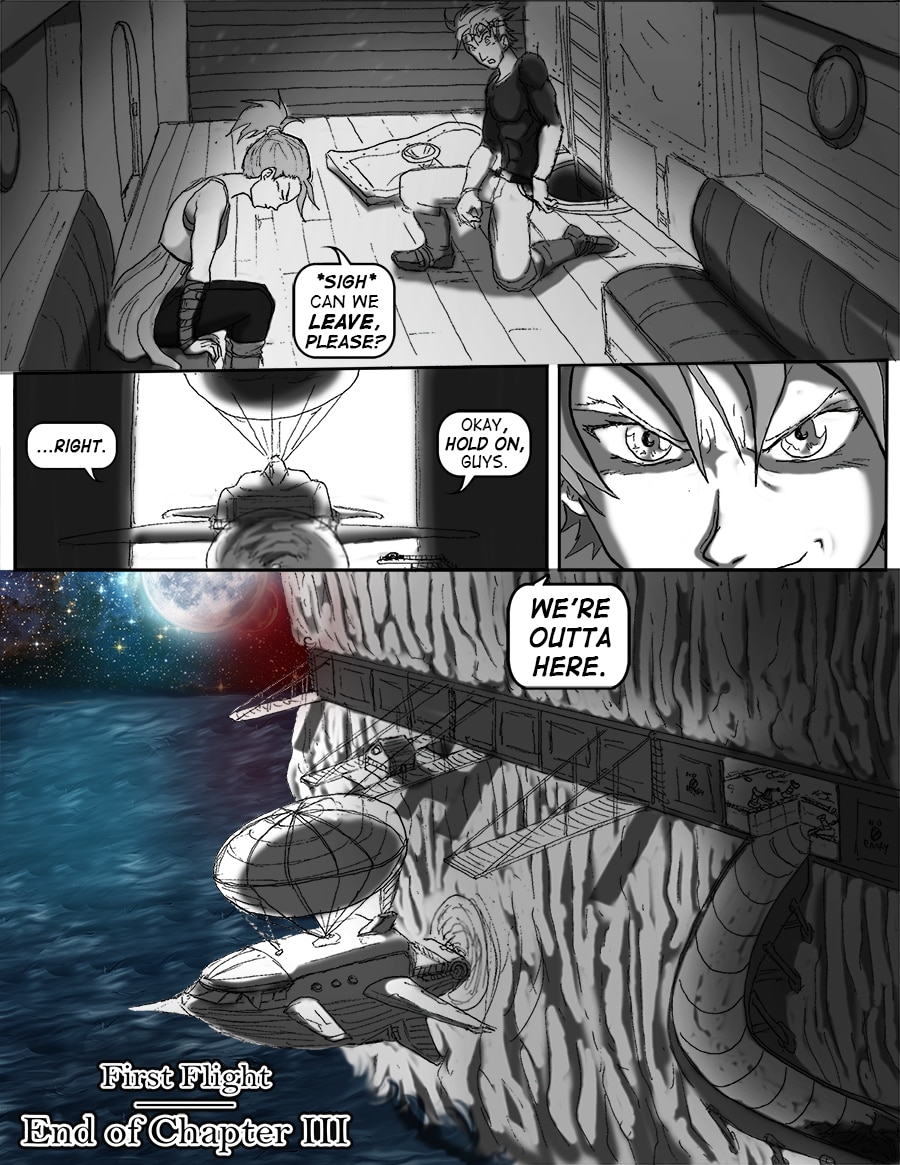 Roz's attempts to sleep are violently interrupted. From her window she sees the bell tower decimated. Falco and Wulfi are en route to the abandoned docks south of town to board Falco's new airship and escape the terror unbeknownst.