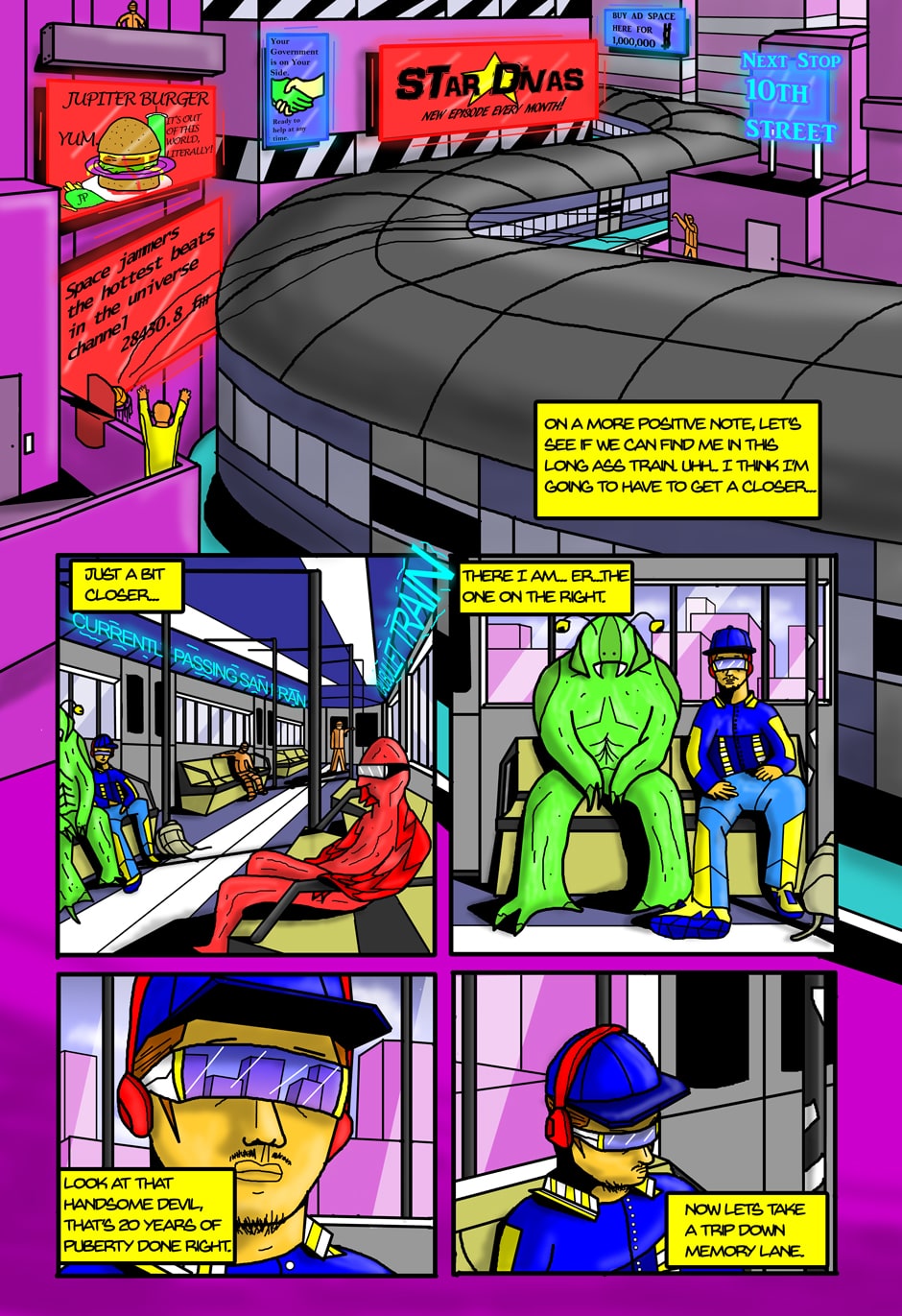 A futuristic sci-fi, action, comedy comic about 5 broke college kids, a talking chimp and their quest to save the earth from a global warming meltdown... and their only hope is a weird space crystal they got from a crazy old man, that is slightly uncontrollable.