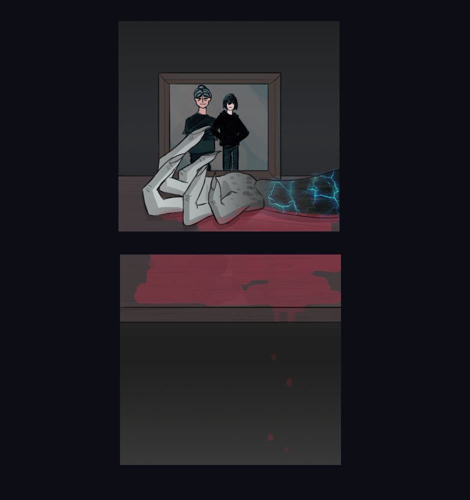 A young boy, immune to the disease sits alone, with a dull smile to his face, he lives his day out as if nothing has happened.