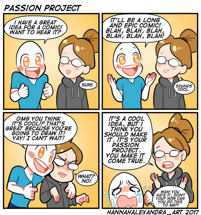 I've had this kind of thing happen to me before. I'm always open to chatting to people about their ideas and hearing about their projects. However, just because an artists listens to you, doesn't mean they are required to drop everything they are doing to work on your project because you order them to. If you have a story or a passion project, you have to create it. By doing the project yourself, you will improve immensely at drawing/writing. Or you should commission and pay an artist to work on that project you want, since an artist's time is worth something. You shouldn't whine or guilt trip the artist if they say no to your art request. Many artists are busy with their own passion projects and goals, so you can't be upset if they don't want to take on more work.