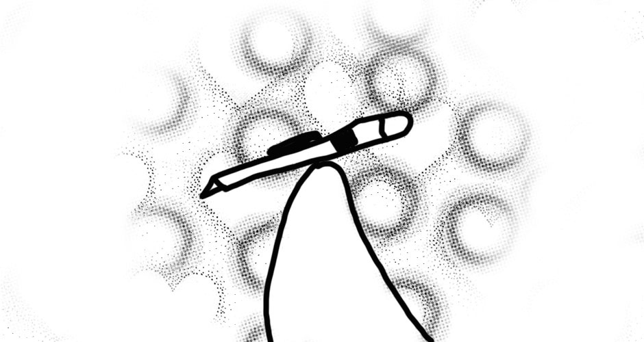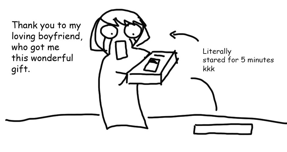 So happy to see another update! And when I saw a close up of that pen, I knew the punchline then and there. Congrats! (and note to the bf: nice!) Let's continue to make comics and rock out and stuff!