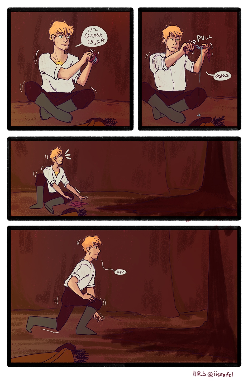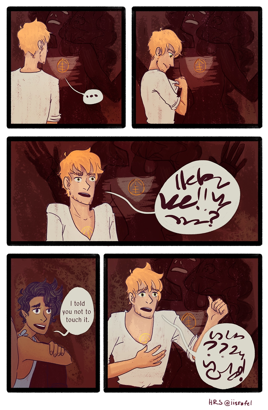 What he's saying, now that I can zoom in on mobile: Isra: "What the- OW! SHIT!" *boom* "whoops." And I can't read the rest. Maybe one of the other fans can help me out