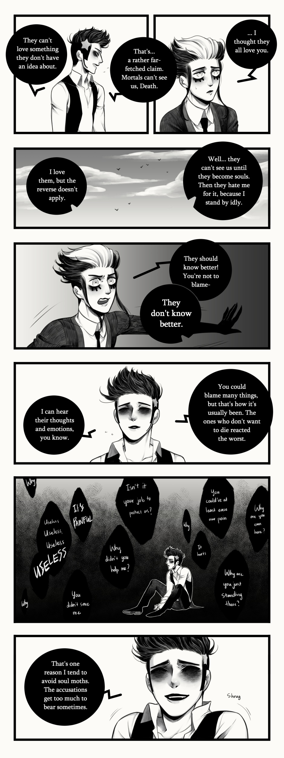 Death's job isn't really his favorite, but it's not like he could change it. It doesn't help that he's attracted to his opposite who seems to detest his very existence.