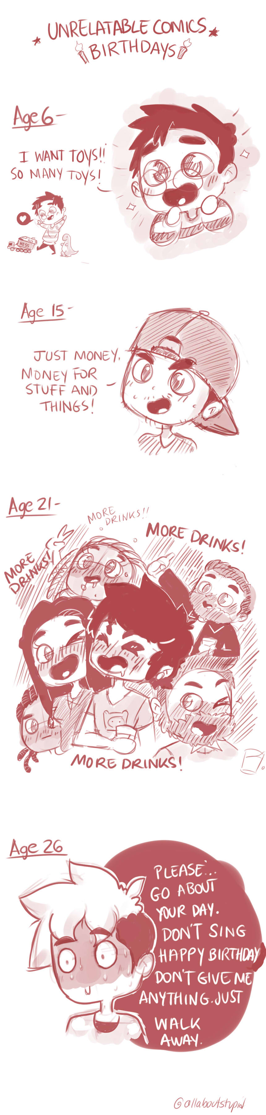 Even though I made a comic about it...Ive been busy and sick and working but my birthday is tomorrow. I turn 26.