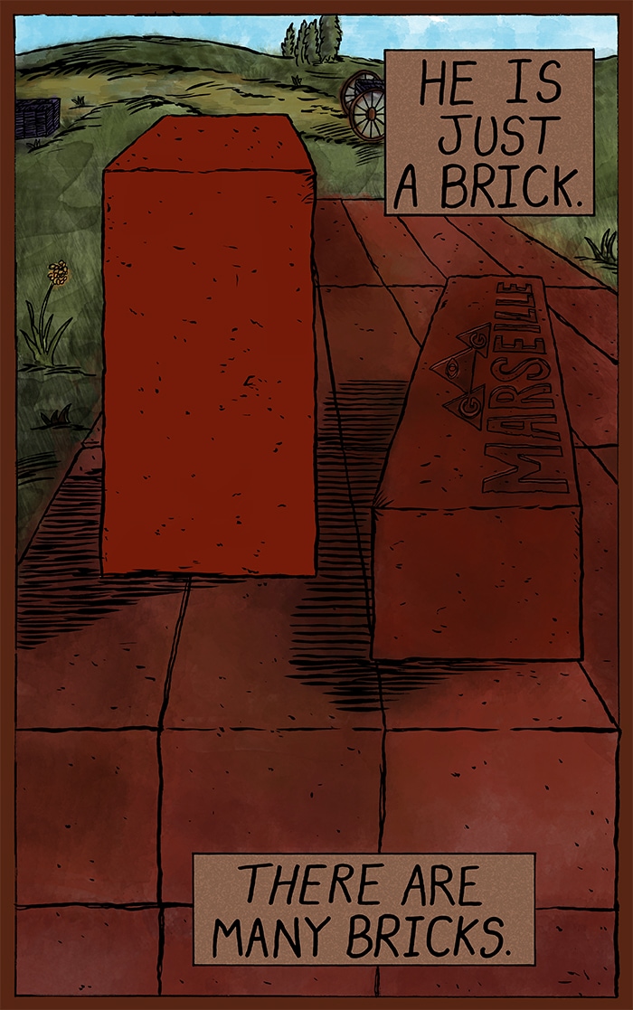 France. 1896. One brick. Alone. In a world of bricks. . . and of other stuff, too. It's a big world after all! How will one brick fare against all of creation? Stay tuned for answers! (and probably questions too)