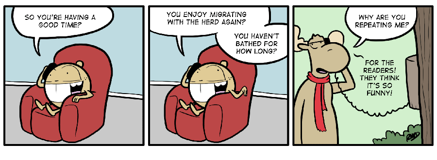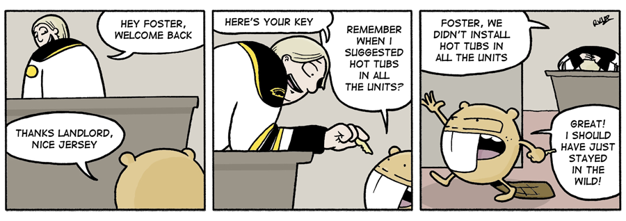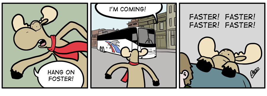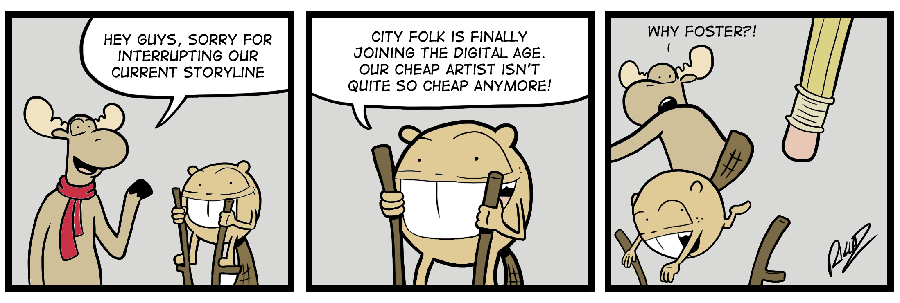 Welcome to City Folk, the webcomic where Mel the moose and Foster the beaver leave their home in the wild to travel to the big city. Life as city folk isn’t as easy as it would seem.