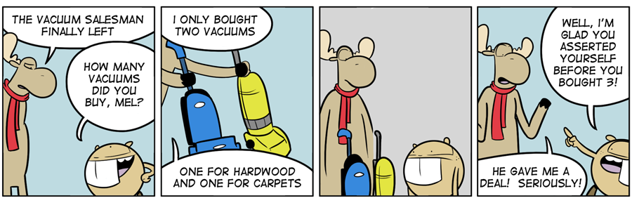 Welcome to City Folk, the webcomic where Mel the moose and Foster the beaver leave their home in the wild to travel to the big city. Life as city folk isn’t as easy as it would seem.