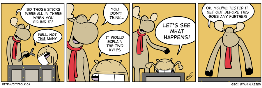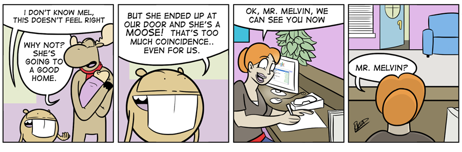Welcome to City Folk, the webcomic where Mel the moose and Foster the beaver leave their home in the wild to travel to the big city. Life as city folk isn’t as easy as it would seem.