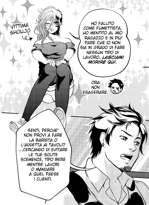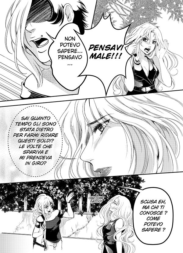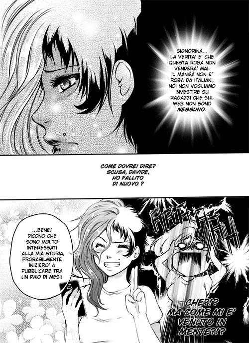 Vorrei fare solo un appunto, se mi permettete: magari ora che la vostra fetta di pubblico -pubblicando solo in italiano- non è vastissima non vi cambierà tanto, ma se decideste di tradurre anche in inglese la vostra opera, vi sconsiglio di aggiornare i capitoli con un po' di pagine alla volta nello stesso "post", perché a tutti i lettori che usano l'app -da tablet piuttosto che da smartphone- non arriva la notifica e devono per forza aprire il sito da pc per accorgersi dell'aggiornamento. Non è un gran problema, sia chiaro, ma è stato un caso che -ad esempio- oggi io l'abbia fatto, dopo più di una settimana, mentre controllo quotidianamente col tablet gli eventuali aggiornamenti di tutto quello che sto seguendo. Ripeto, per ora magari non vi cambierà tanto, ma quando il vostro pubblico crescerà a dismisura (abbattute le barriere linguistiche ne sono CERTA) secondo me sarà più efficace pubblicare un po' per volta in più "post"!