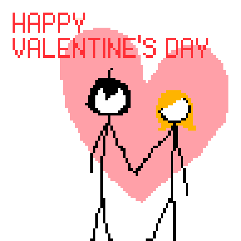 happy (day after) Valentine's day everyone, i hope it was great for all of you, whether you had someone to spend it with or not! i drew a little pixel art thing for today, of scenelena and i :)