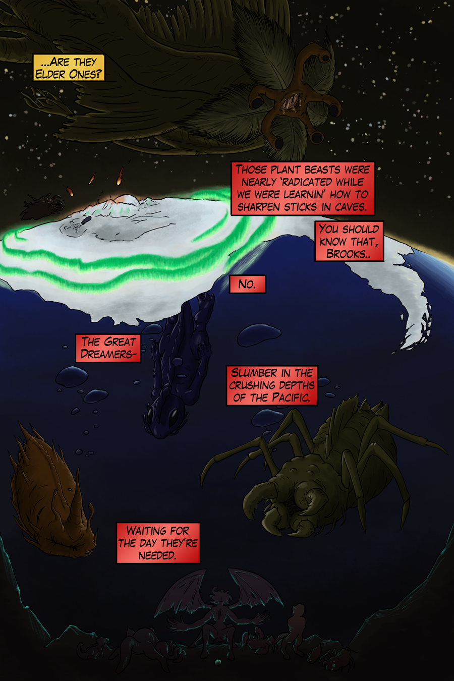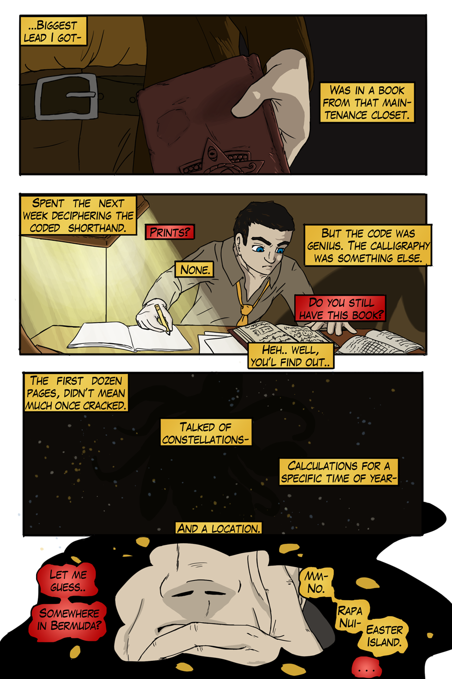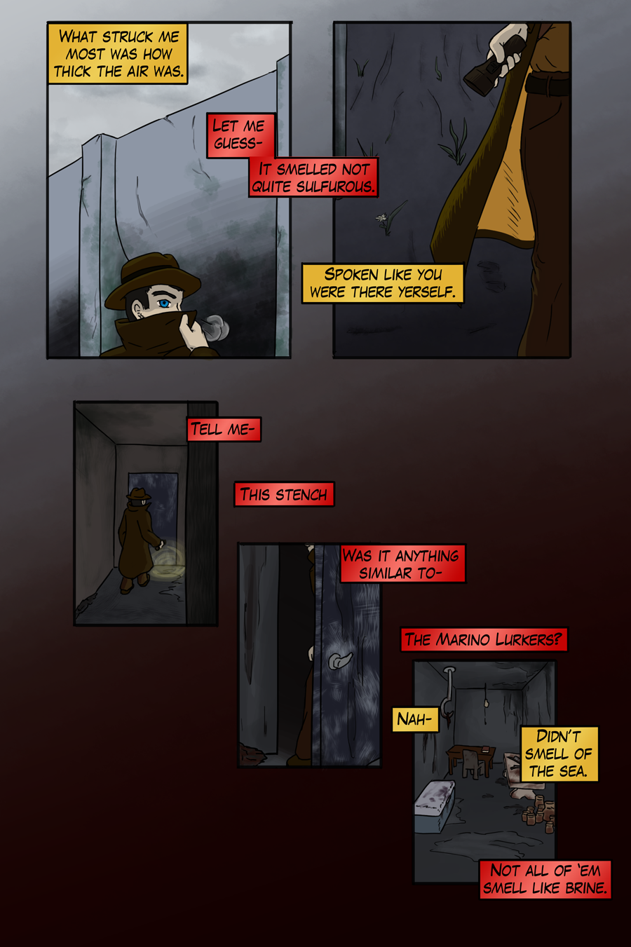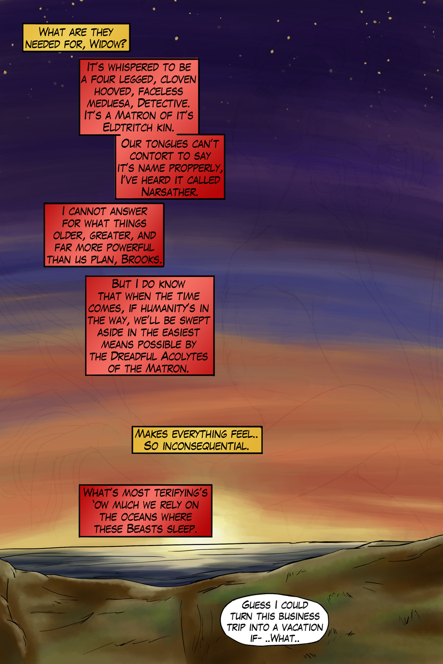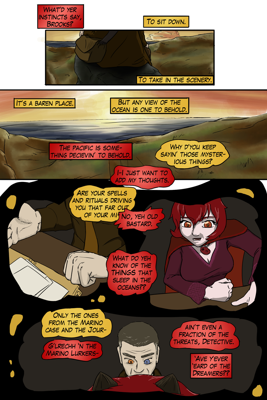 The current story promises a glimpse of beginnings, lore of Eldritch things, and banter of characters in this noir themed chapter. Come, hear the story of an old detective.