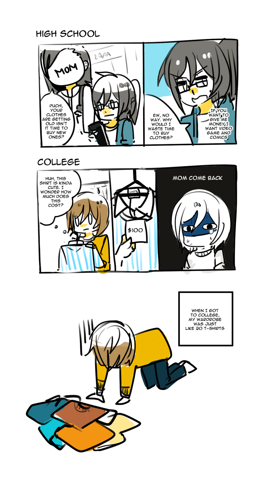 Moral of the story: if your parents still pay for your clothes, buy a lot of shirts. I have to go to job interviews now and they're expensive, man.