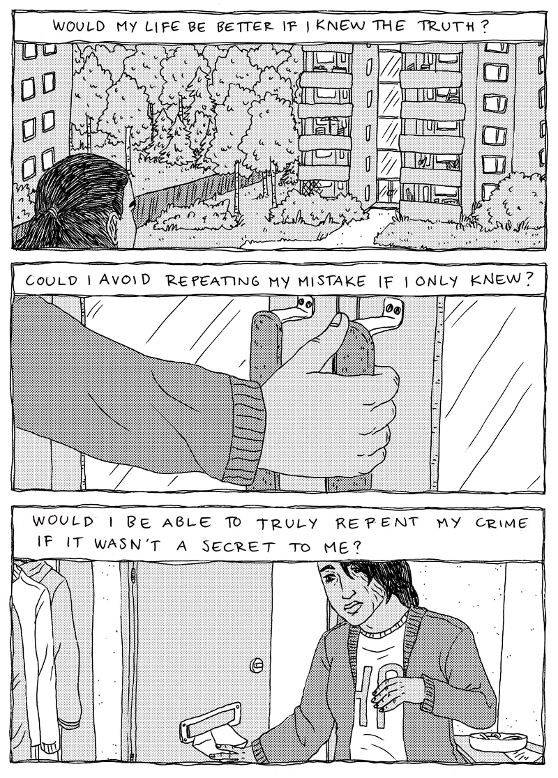 Start Over Again is a comic about not so distant future where criminals are rehabilitated by erasing their memories of the crimes. Åsa is one of these people. She doesn't remember a thing from her past.