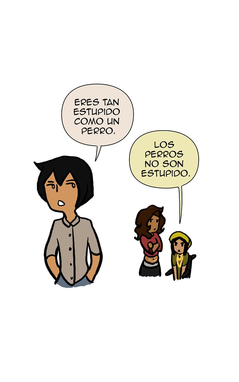 He called them stupid then she said that they were not. Estupido -> stupid