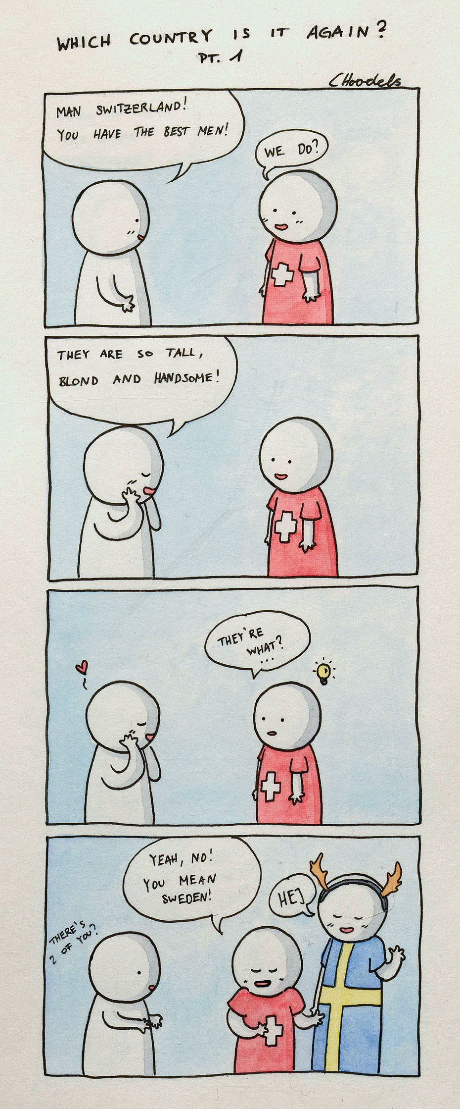 It doesn't really matter if you're Swiss or Swedish, if you've been outside your country, you have at least once been confused with the other country.
