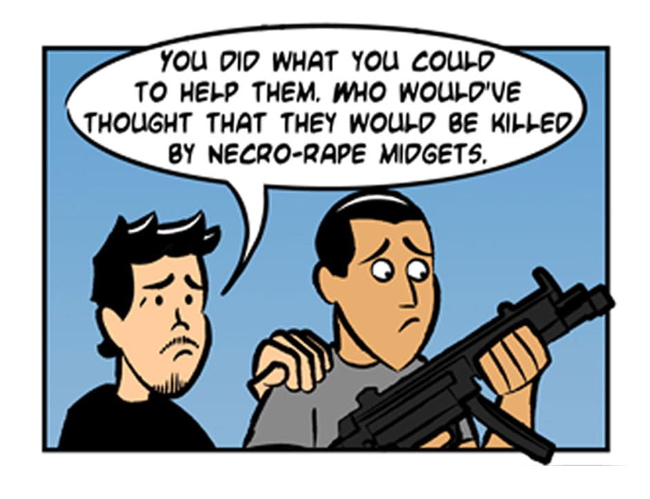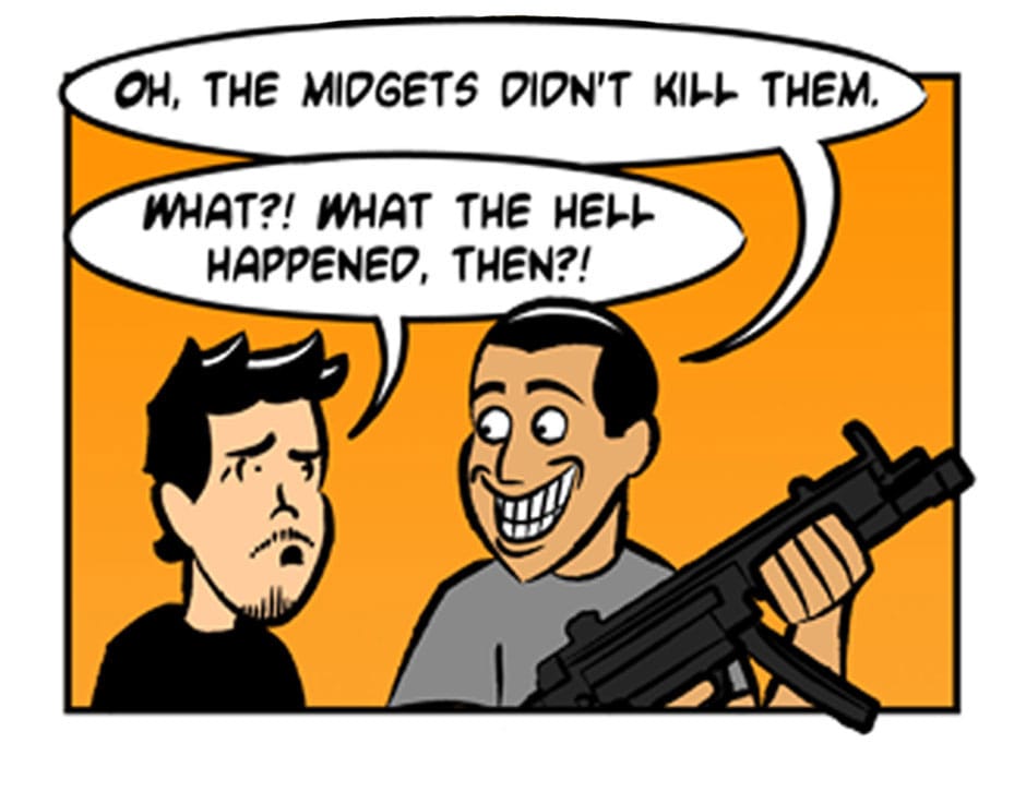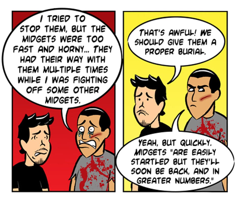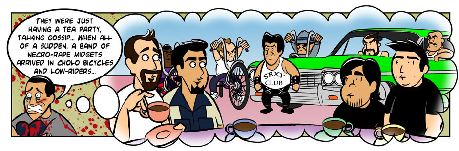 When Gelipe, Ben, Lerms, and Señor Maquino die a horrible bloody death during one of their gossip parties, it's up to Isma and Insaneo to honor the fallen Nerdmigos and kick some necro-rape midget* ass!