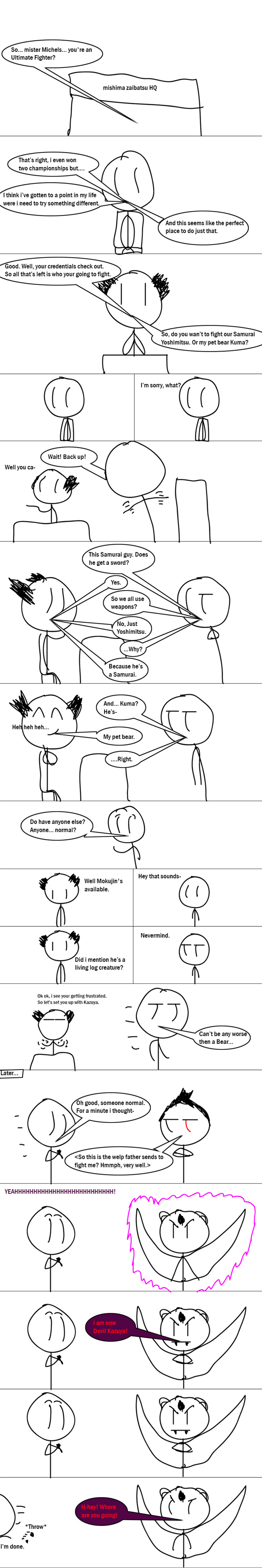 #Tekken #Fighting_Game #video_game #Video_Game_Web_Comic #japanese #weird #comedy #Namco #stick_figures #Mokujin #Dbz #Bandi_Namco #devil #Vs #video_game_logic #parody