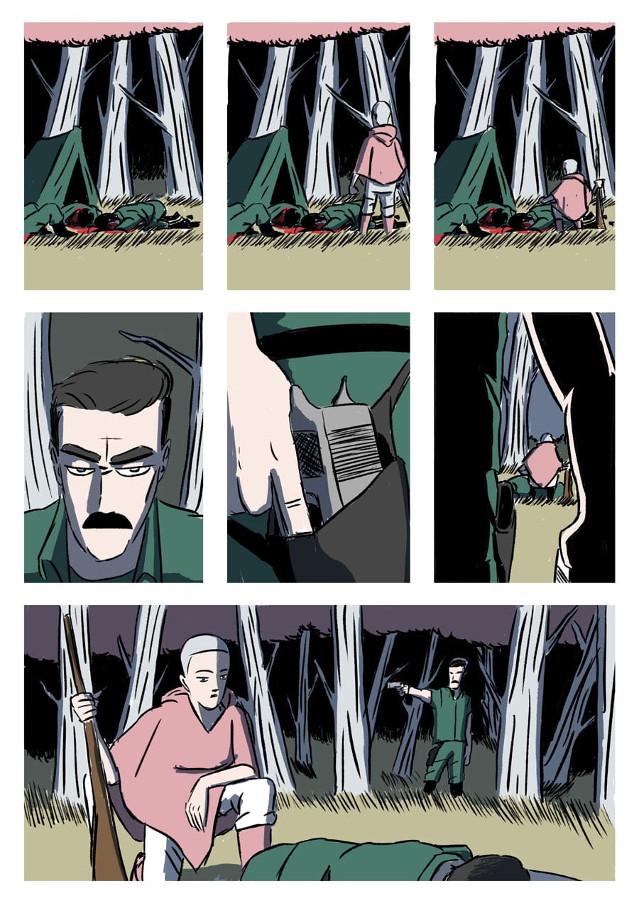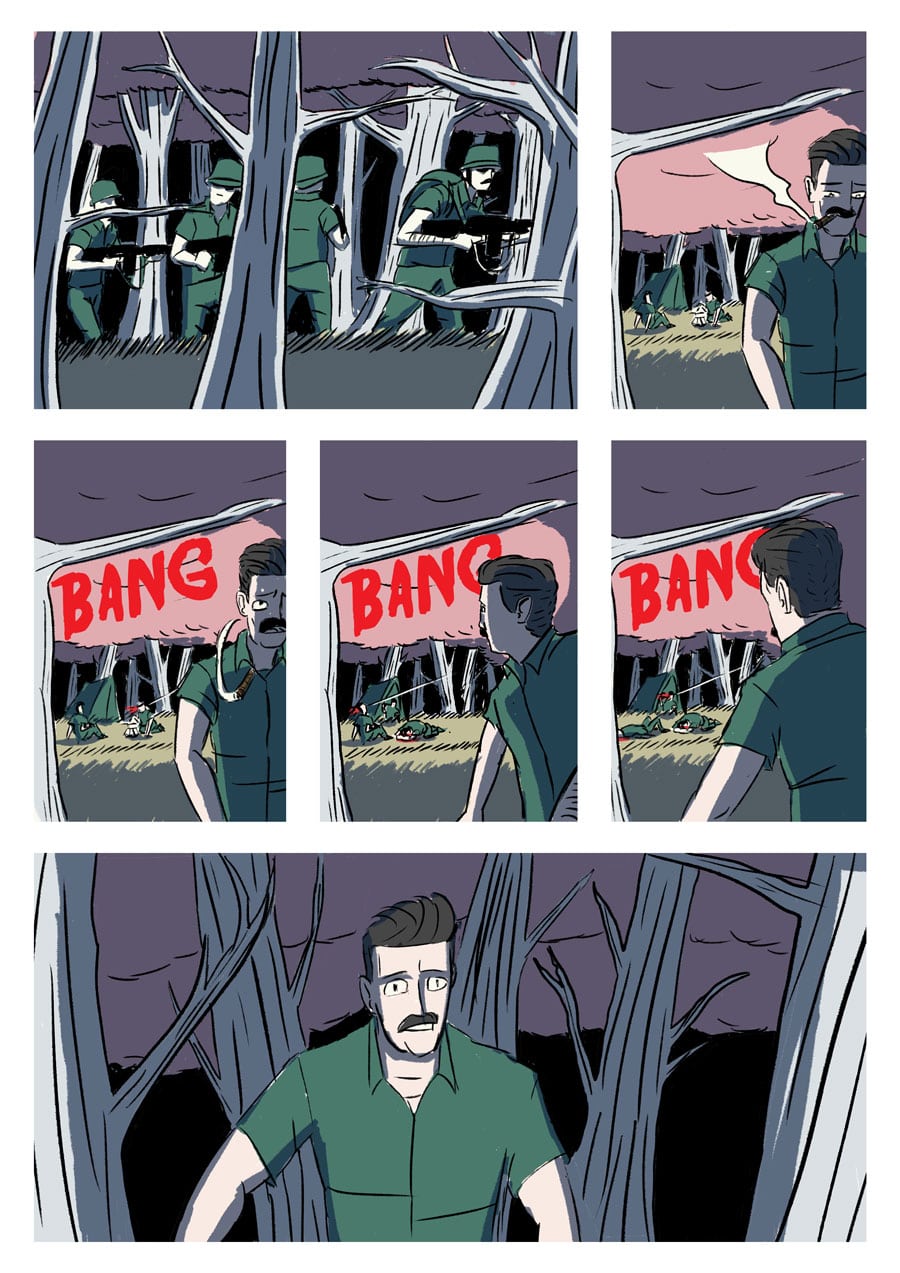 Four government employes spend a night in the woods.