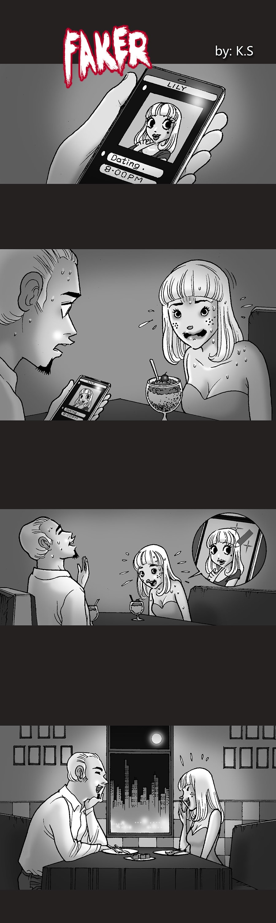 I am confused. He likes the ghost girl or the faker one?