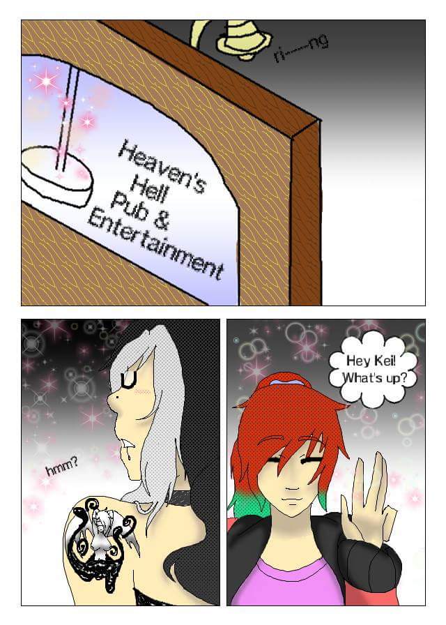 Cute little babes in the last panel are Leviathan and Zephyr or Levit and Zeph. Green is Zephyr and blue is Levit. Yes they are both male so in a way HH is kinda a gay entertainment pub.