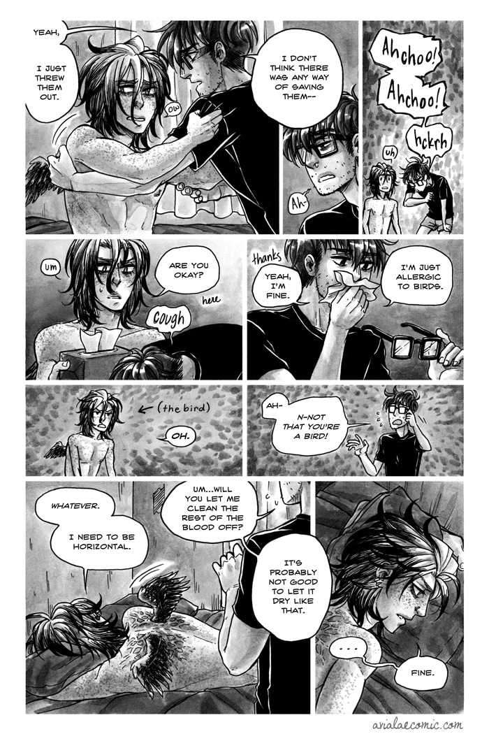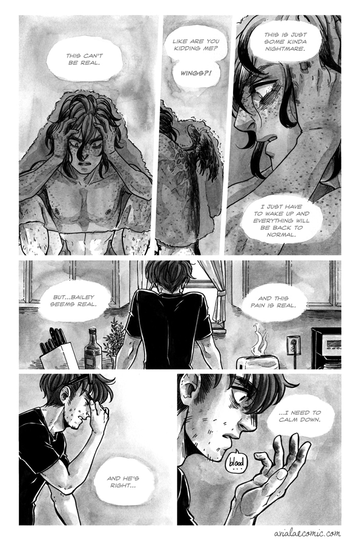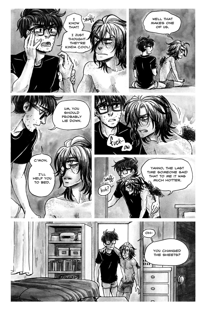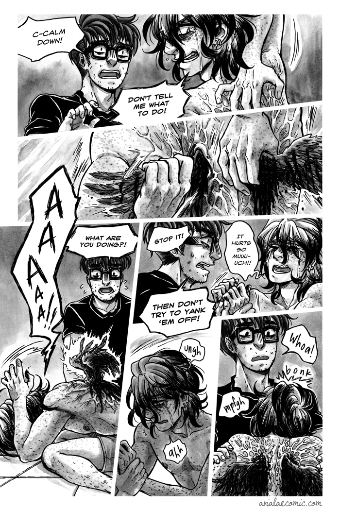 Gannet used to be perfectly normal. Sure, he was stuck in a homophobic hellhole in the middle of nowhere, but he was normal. Then he woke up one morning to find a freakish set of wings sprouting from his back. With no one but his wannabe ornithologist neighbor, Bailey, to confide in, Gannet now must go through the painful and bloody process of growing wings.