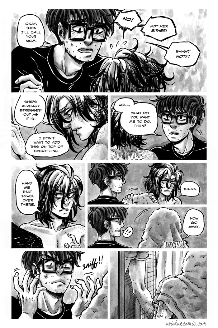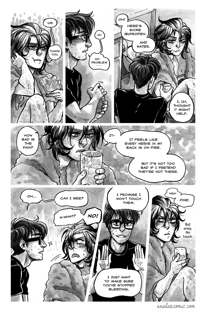 This comic is rated 18+ for graphic depictions of sex and blood. Tapas does not allow explicit content, but you can read the uncensored comic for free at yaoi.biz/avialae