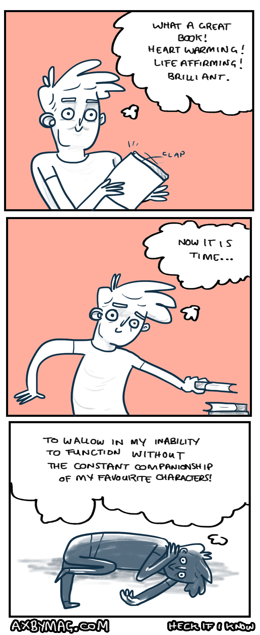 I have been reading a lot lately. I think its because i read one book, couldnt stand to leave those characters behind and therefore had to replace them with others from another book. Of course the process never ends