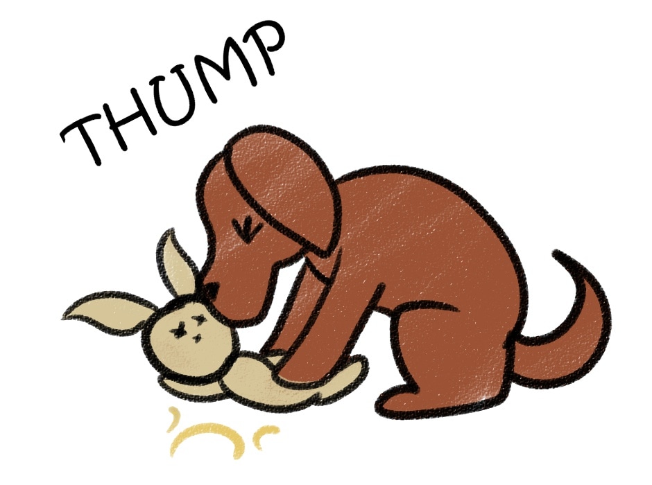 My Cousin's dog, Roxie, thinks her toys are dying sometimes. She will jump on them for a few moments before kissing them like she is giving them CPR. I find it amusing because my cousin works in a hospital...but she gets a bit peeved at the loud noises sometimes.