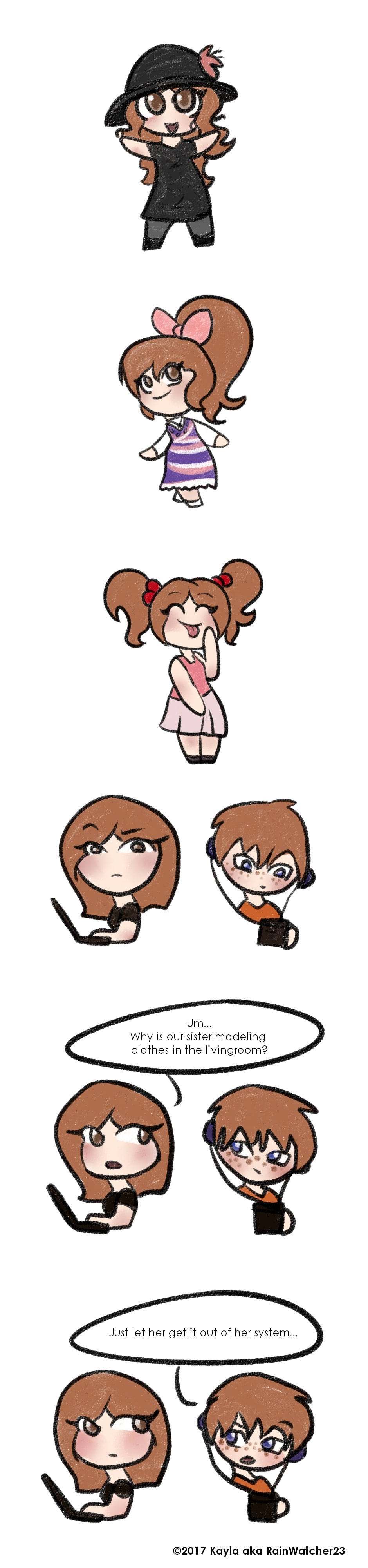 So I have a little sister and she loves modeling clothes. So I'll look up from working on my laptop to see her running around in different outfits every like five minutes or so...