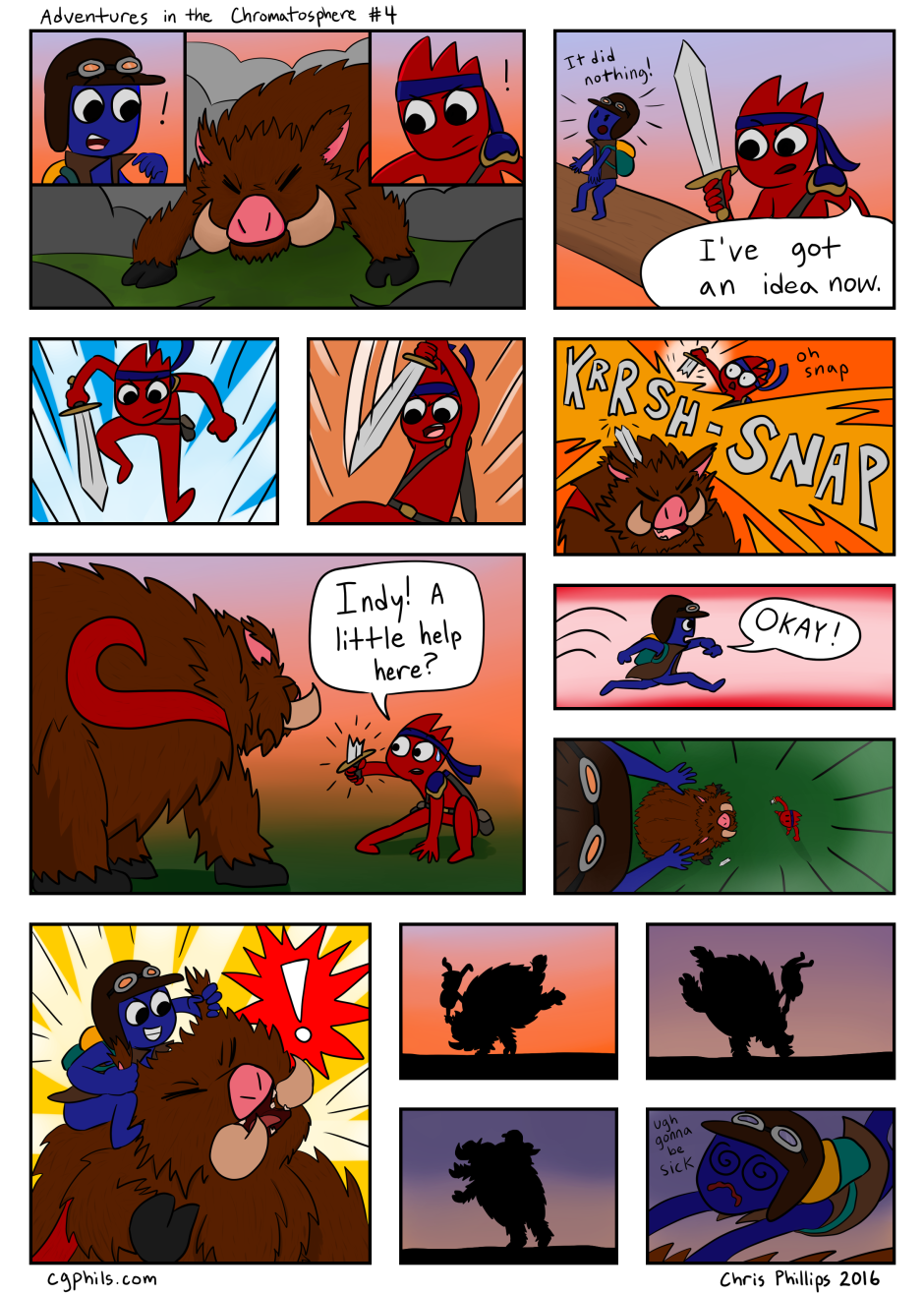 Redd and Indy have some ideas of varying success! Page 4 of Adventures in the Chromatosphere! Updated website link: https://chromatosphere.com/pages/page4