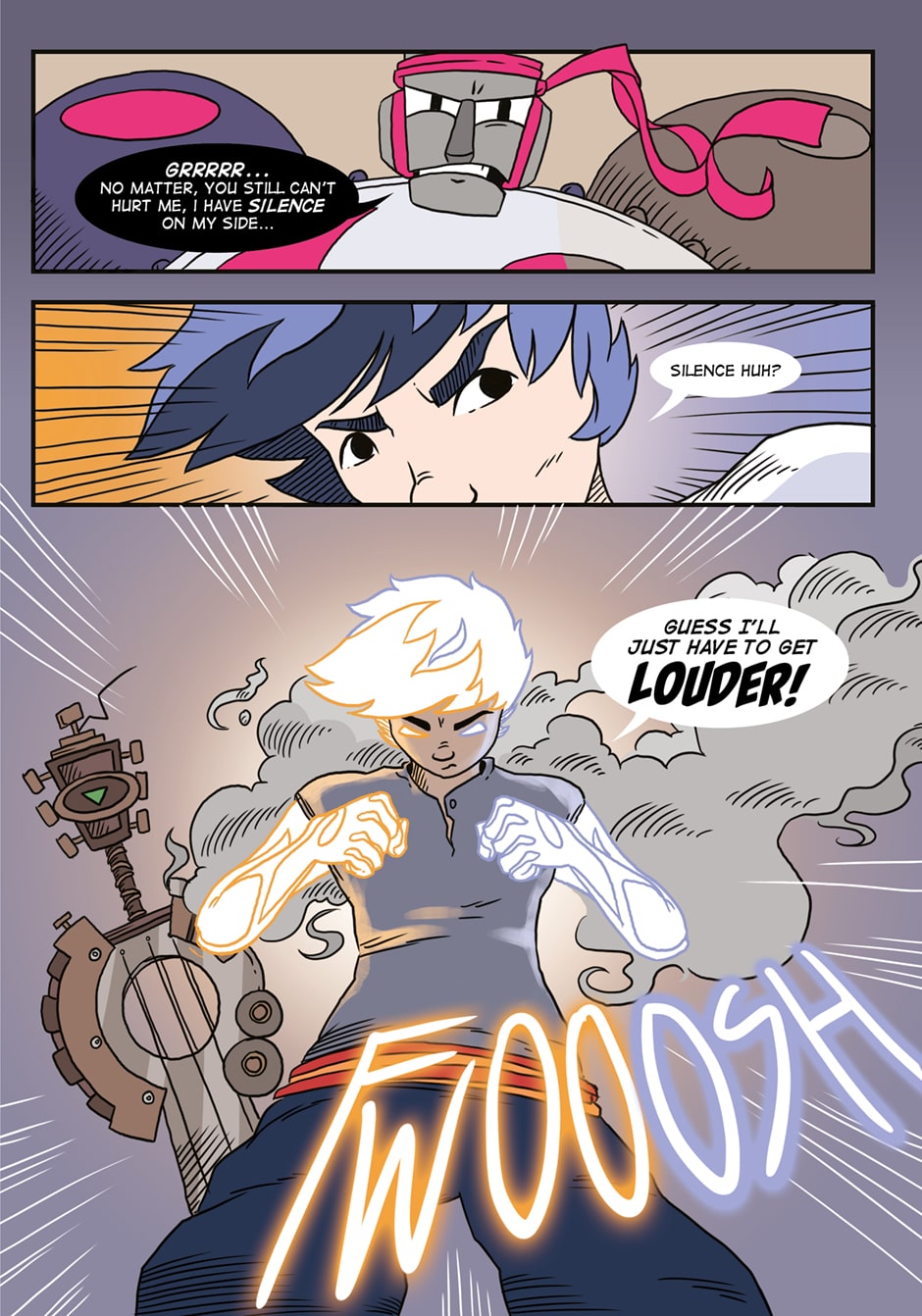 You remember Zach holding Flat and Sharp across his body at the end of Volume 2? Well now he's perfected that technique...
