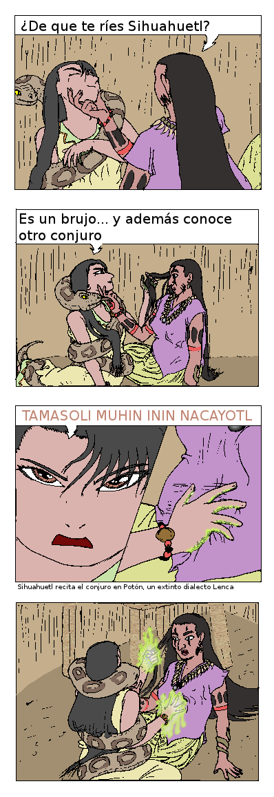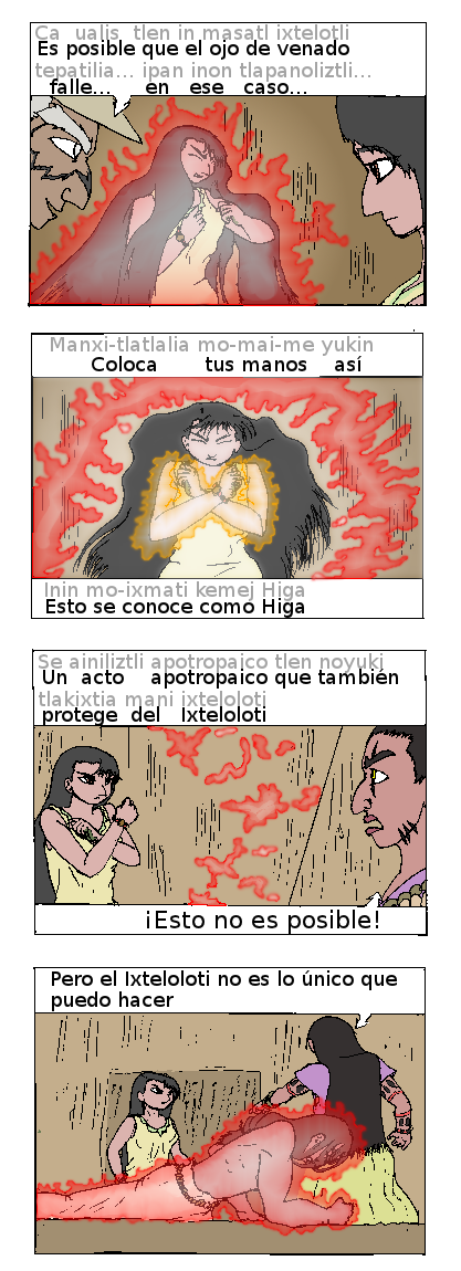 El brazalete es un conocido amuleto que las mujeres usualmente les ponen a los niños para prevenir el Ojo o cualquier otro mal; el hechizo que Sihuahuetl usa está basado en otro mito que intenta explicar los cólicos, diciendo que a la persona en realidad le han puesto un sapo dentro del estómago