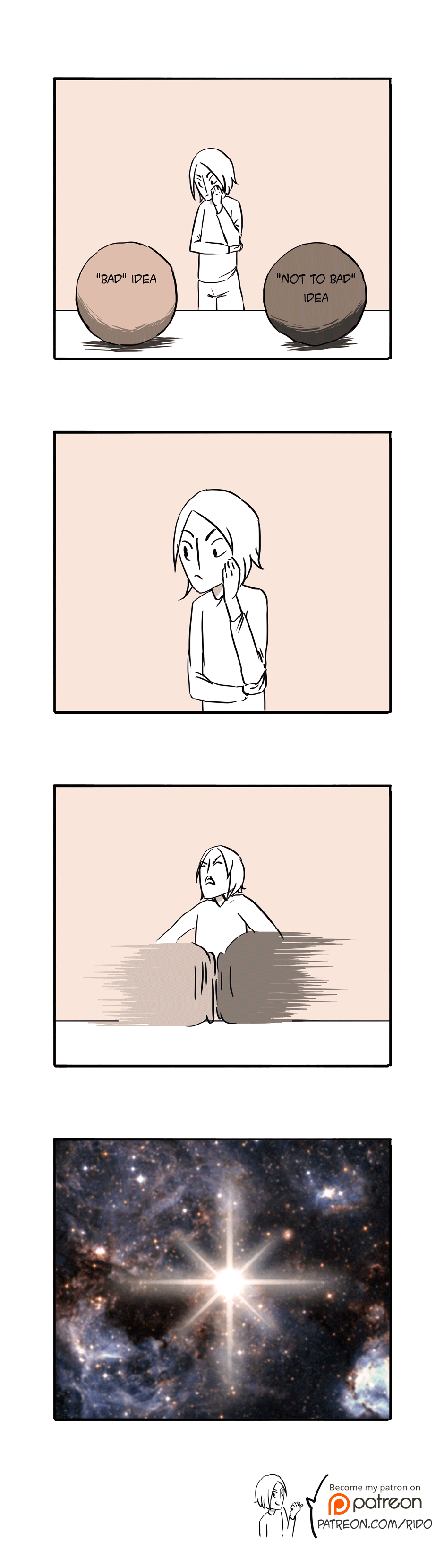 Hi!! Sometimens I tend to overthink, and mostly of this times it doesn't end very well for me. Guess I need to change this. If you want to read this comic on early access among other cool stuff, go check my Patreon: patreon.com/rido