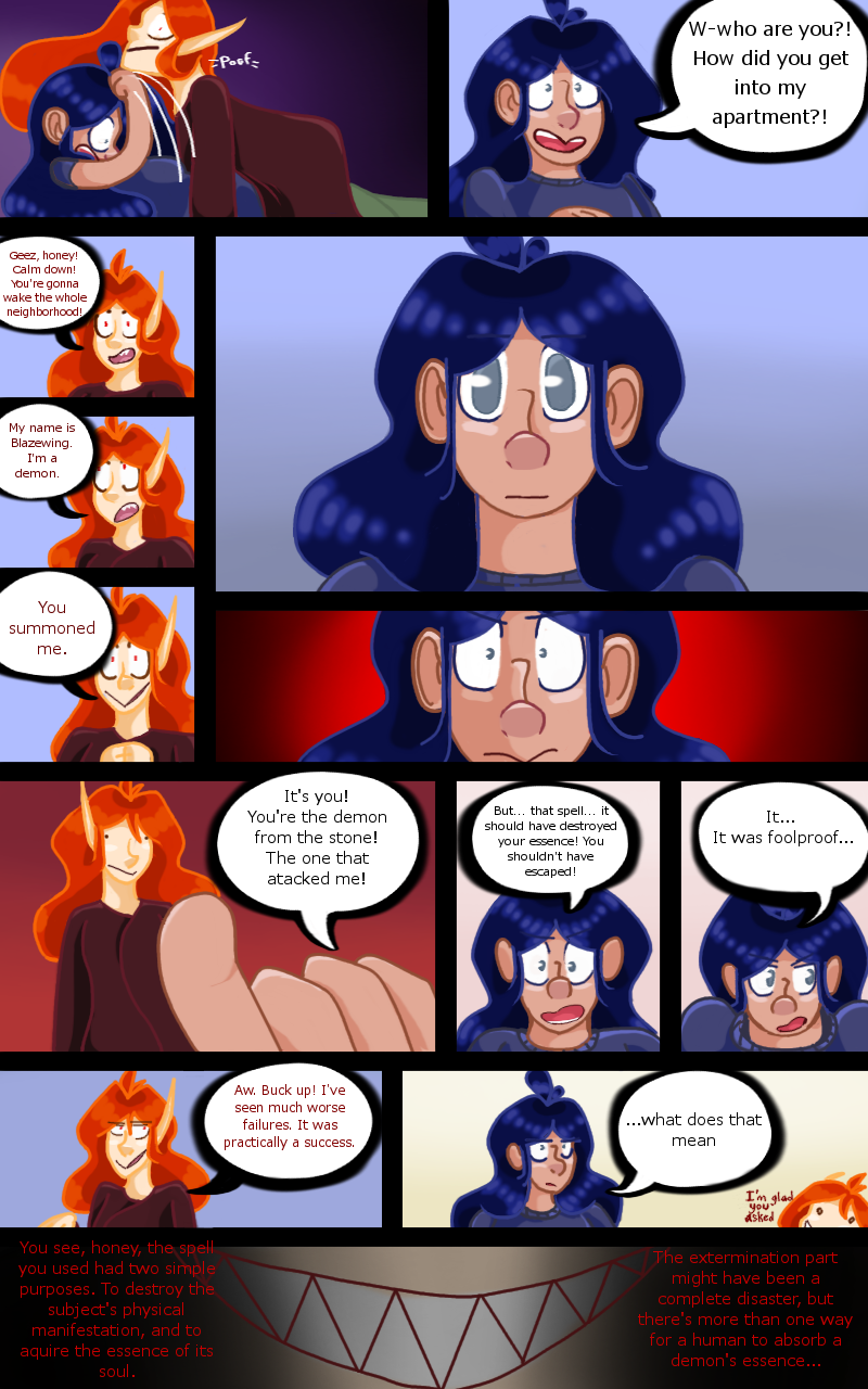 After an attempt to perform a spell goes terribly wrong. 15 year old Rachel finds herself bound to the mischievous entity known as Blazewing. This would be all fine and dandy if it wasn't for the fact demons and humans are mortal enemies, and being found with the demon would result in immediate banishment... or worse.