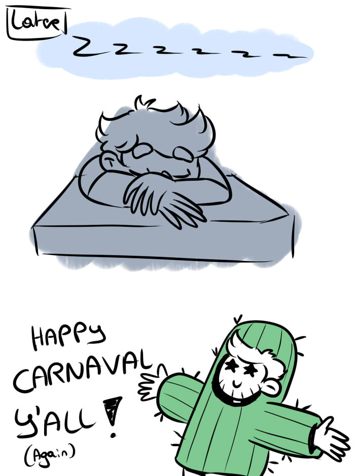 Bruuuh, University is killing me, I finally found some time to draw :,) Also Again HAPPY CARNAVAL!! I was able to go for one day and went as a cactus! :D Who also celebrates carnaval?
